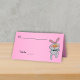 Cette carte de place pliée pour vos fêtes, événements et mariages est rose vif avec un mignon lapin blanc donnant un signe pouce vers le haut et portant une cravate arc noir. Customisez la zone de nom et de numéro de table et le texte au verso avec les modèles.