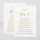 Écriture calligraphique noire avec fioritures sur papier blanc croquant pour les cartes de tableau de table.