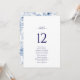 Rendez l'organisation des places de votre mariage à la fois élégante et pratique avec cette carte double face élégante. Le recto présente un design minimaliste épuré avec le numéro de table et les noms des invités affichés dans une police serif raffinée et une mise en page script. Au verso, un motif floral bleu doux ajoute une touche romantique et gracieuse. Idéal pour les mariages, les réceptions ou les dîners formels, cette carte de placement allie praticité et design sophistiqué.