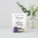 Ces cartes de places sont parfaites pour faire savoir aux gens quels sièges sont réservés à votre cérémonie de mariage ou réception. L'élégant design se compose d'un seul rose améthyste à long tige de couleur violet réfléchissant dans un bassin d'eau avec des vagues et des ondulations. Il y a de la place pour désigner les sièges réservés.