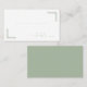This elegant wedding place card features a minimalist design with a clean white background, accented by light green geometric shapes and cursive typography. The layout is balanced and sophisticated, with abstract corner elements adding a touch of Art Deco flair. The word "table" is gracefully scripted in the lower right, enhancing its chic appeal. Perfect for creating an atmosphere of understated luxury at your special event.