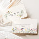 Elégante carte de mariage à fleurs avec fleurs sauvages d'aquarelle et feuillage dans les tons rose, jaune, violet, bleu et vert bordant le fond du design avec un arrière - plan crème. Les cartes de place florales boho s'inversent pour afficher vos noms et date mariage à l'intérieur d'un cadre rectangle de fleurs sauvages. Les cartes de places rustiques fleur sauvage mariage sont parfaites pour les mariages du printemps et de l'été.