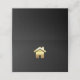 Cartes de place pliées avec une simple image d'une maison en dégradé or sur un arrière - plan noir. Design minimaliste élégant.