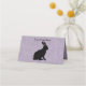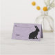 Cette carte de place pliée pour vos fêtes, événements et mariages est un joli mélange de violet clair et de blanc avec le profil latéral d'un élégant lapin assis fait en silhouette noire. Customisez la zone de nom et de numéro de table et le texte au verso avec les modèles.