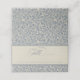 Une carte de mariage élégante avec un motif baroque bleu et beige recouvert d'un ensemble coordonné de rayures beiges à deux tons. Une couleur de texte bleu correspondant complète la conception. Une suite de produits mariages assortis est disponible dans ce design.