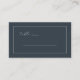 This elegant wedding place card features a minimalist design with a sophisticated dark blue background and clean, white lines. The cursive typography adds a touch of timeless charm, perfect for creating an intimate and refined atmosphere at your special event. With its simple yet stylish layout, it seamlessly complements any classic or modern wedding decor, ensuring that each table setting exudes grace and elegance. Customize the details to personalize your celebration, making this piece both functional and beautiful.