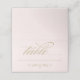 Elégant style plié escort place card en pastel ballet rose (couleur arrière - plan peut être customisée) et champagne or schéma de couleurs. Comprend l'écriture de script de calligraphie et l'accent de conception de défilement.