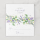 Ceci est une carte de table pliée élégante et simple sur le thème des fleurs sauvages pour afficher le nom de vos invités et le numéro de table. Le design présente une variété de fleurs sauvages printanières, y compris des jonquilles jaunes, des pois de senteur, des pissenlits et de la verdure de fougère et de lierre.