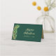 Ces élégantes cartes de place mariage aux tons bijoux en vert émeraude et or sont décorées de feuillage d'eucalyptus. Le texte modèle permet de taper facilement les noms de la mariée et du marié et la date du mariage.