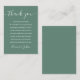 Une célébration de mariage élégante merci jeu de cartes de réception. Personnalisé avec votre message de remerciement spécial ensemble dans la typographie or stylisée sur un arrière - plan vert eucalyptus. Vous pouvez customiser l'arrière - plan à votre couleur de thème mariage préférée. Un gardien spécial vous remercie à vos invités. Conçu par Thisisnotme©