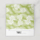 Une carte de table pliée pour vous permettre d'écrire à la main des noms et des numéros de table. Créé avec un motif répétitif de grands feuilles de palmiers sur un arrière - plan vert olive. Moderne tendance et tropical.