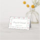 Add personalization to your decor by incorporating the names of your guest on beautiful floral place cards. The white background consists of pink roses, while the center of the card features a bordered rectangle with the guest's name on the from with table number. The back of the card displays the wedding couple's names along with their wedding date.