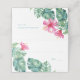 Le design Tropical Place Card ou Escort Card comprend une arête du fond de mon feuille de palmier vert peint à l'aquarelle et de fleur d'hibiscus rose. Espace prévu pour le nom de l'invité et le numéro de table. Les cartes inversées pour révéler les noms et la date de douche de maman et papa correspondants dans la typographie manuscrite. L'intérieur est assorti d'une couleur vert turquoise et solide. Conçu pour correspondre Do Tell a Belle's Tropical Floral Collection. Parfait pour la Floride et les mariages de plage de destination. Pour en savoir plus, visitez www.zazzle.com/dotellabelle