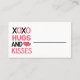 Dites bonjour à l'amour et au style avec nos adorables cartes d'escorte "XOXO Hugs and Kisses" en rose et noir! Ces petites cartes de lieux douces sont là pour parsemer le charme de votre événement spécial, que ce soit un mariage rêveur, un dîner de Saint-Valentin, une douche à bulles, un anniversaire chaleureux ou une bachelorette sassy. Avec un design "XOXO" ludique, ces cartes apportent une pop de personnalité et beaucoup d'amour à vos tables. Ils sont le moyen idéal pour guider vos invités à leurs sièges avec un clin d’oeil et un sourire. Fabriquées avec des matériaux de qualité (et beaucoup d'amour), ces cuties sont parfaites pour toute célébration romantique. Ajoutez un peu de plaisir, un peu de romantisme, et beaucoup de coeur à votre événement en faisant de ces cartes une partie de votre grand jour! 💕