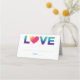 L'amour, c'est l'amour. La carte de place escort mariage présente un design typographique "Amour" coloré avec un accent cardiaque et un beau dégradé de couleurs arc-en-ciel.