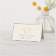 Élégante, simple, carte de table de mariage minimaliste champagne or avec cœur de corde et écriture calligraphique moderne.