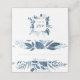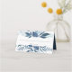 Le design chic de la carte d'endroit botanique d'hiver comporte une bordure supérieure et inférieure de feuillage d'aquarelle et de feuilles dans des tons bleus glacés. Espace prévu pour le nom de l'invité et le numéro de table. Les cartes sont inversées pour révéler un cadre botanique correspondant avec vos initiales et la date mariage à l'intérieur. Conçu pour correspondre à notre collection Wild Azure mariage et événement.