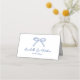 Carte de table de Mariage Whimsical Blanc et Bleu inspirée par l'Europe. Ces cartes de lieux ludiques et élégantes, inspirées des styles italien, français et européen, sont parfaites pour des réceptions de mariage, des dîners de répétition, des douches nuptiales, et plus encore. L'avant présente "Table ___" dans une police joyeuse, avec des lignes ci-dessous pour remplir le numéro de table et les noms d'invités, ce qui rend les sièges à la fois facile et élégant. Une charmante illustration d'une bouteille de champagne et d'une vitre aux délicats accents cardiaques orne le côté droit, ajoutant une touche festive et sophistiquée. Le dos met en évidence les noms de la mariée et du marié, la date du mariage, et un simple arc dessiné à la main, créant un détail doux et personnel. Ce design allie harmonieusement fonctionnalité et charme d'inspiration européenne et est entièrement personnalisable pour correspondre au thème de votre événement. Ces cartes de réglage de lieux apportent une touche réfléchie et artistique à votre célébration tout en gardant tout magnifiquement organisé.