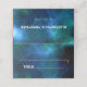 Une photo d'une galaxie bleu foncé et vert comme toile de fond pour votre carte de lieu de réception de mariage. Utilisez cette carte de table moderne pour vos invités à la réception de votre mariage. Il y a aussi des invitations à enregistrer la date et le mariage disponibles.