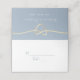 Simple, minimaliste, moderne, élégante carte de table de mariage bleu poussiéreux avec nom et numéro de table corde dorée en forme de cœur et faux dos en feuille d'or.