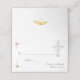 Le design présente l'image douce d'un crucifix en haut, à droite. Les noms de Bride et Groom, ainsi que la date du mariage, sont affichés dans une police nuptiale élégante et argentée juste en dessous. La petite image d'une rose rose grace les coins gauche. La ligne vide pour le remplissage du nom est présentée au centre. La lettre "M" apparaît au début de la ligne pour indiquer Mlle, Mme Master ou M. Un simple "M" fonctionne pour l'une ou l'autre et est une étiquette appropriée. Toutefois, le client a la possibilité de customiser ou de partir tel quel. Un blanc pour le numéro de tableau s'affiche ci-dessous. A l'intérieur, un message de remerciement personnalisable à votre invité. Reverse affiche l'image des anneaux de mariage joints. Conçu pour coordonner avec la "Suite Mariage catholique traditionnelle Rose nuptiale".