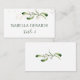 Élégante carte de place plate illustrant un brin de gui et un feuillage doré dans un style aquarelle.