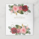 Voici une jolie carte de mariage pliée qui présente un bouquet époustouflant de roses rouges et roses niché parmi des feuilles verts et des tourbillons d'or. L'image est imprimée à l'avant et à l'arrière de la carte, avec plusieurs champs de texte personnalisés en or. Le dos de la carte est noir. Cette carte correspond aux invitations de mariage Rose Sparkle Stripe et d'autres produits mariages dans notre magasin.