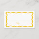 Ajoutez une touche de style à votre réception de mariage ou événement spécial avec ces cartes de mariage Modern Wavy Frame ! Le design rétro affiche "Table" dans un script jaune manuscrit avec espace pour écrire le nom et le numéro de table de votre invité. Une bordure ondulée jaune entoure le design contrastant avec un arrière - plan blanc. L'arrière de la carte à plat contient vos noms et votre date de mariage en caractères jaunes gras.