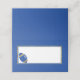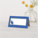 Carte mariage pliée en bleu et blanc, avec des accents de parties scintillant en faux or et des graphiques d'un football bleu et or. Personnalisez l'avant de la carte à la main pour chaque client à la réception.