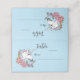 Une licorne blanche en profil est entourée de fleurs roses, coralliennes et lavande contre un arrière - plan bleu doux.