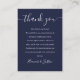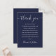Une élégante célébration mariage bleu marine merci carte de réception. Personnalisé avec votre message de remerciement spécial ensemble dans une typographie blanche élégante. Un gardien spécial vous remercie pour vos invités. Conçu par Thisisnotme©