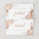 Une élégante carte de place mariage à thème automne en terre cuite bohème en terre cuite pour les sièges réservés avec une calligraphie lettrée accentuée avec des roses aquarellés dessinés à la main, l'herbe de pampas et feuille de palmier.