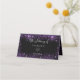 Un établissement moderne et élégant. Un arrière - plan noir décoré de faux parties scintillant violets brille. Ajoutez vos noms à l'arrière. Personnalisez et ajoutez à la main les noms de vos invités et leur numéro de table.
