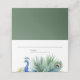 Cartes de la mariage à thème Peacock avec un beau paon, plumes et feuilles tropicaux.