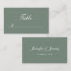 Ces cartes de place mariage vert sauge moderne comportent un simple script de calligraphie blanche. Personnalisez le dos des cartes avec vos noms et date mariage. Meilleurs voeux pour votre mariage et mariage ! Conçu par Susan Coffey.