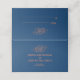 Cette élégante carte de lieu a un monogramme entrelacé en police de script dans les nuances de cuivre et de texte en cuivre sur un arrière - plan bleu. Noms et date sur le devant, avec nom d'invité et numéro de table sur le dos.