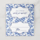 Une carte mariage avec un décor de toile fleurie bleue et blanche.