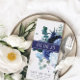 Carte De Placement Mariage élégant Indigo et Bleu Soft