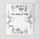 Carte de table de mariage fantaisie à la main en noir, modifiable, représentant deux nœuds, de la nourriture et des boissons. Cette carte de table de mariage fantaisie comporte également une police de caractère style écriture à la main.