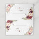 Design élégant et romantique avec de magnifiques bouquets aquarelles fleuris, des flèches avec des coeurs et des fleurs comme diviseur sur l'arrière - plan blanc; sur le dos un arrière - plan royal bordeaux. Utilisez l'outil Personnaliser pour ajouter vos informations. Vous pouvez modifier les polices et leurs couleurs, ainsi que la couleur arrière - plan avant. Pour les articles correspondants, veuillez visiter ma collection de Mariages floraux Burgundy Marsala Blush.