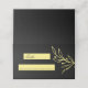 Carte mariage unique pliée avec des fleurs dorées romantiques et élégantes sur arrière - plan noir POUR PLUS DE PRODUITS CORRESPONDANTS cliquez sur la collection ci-dessus ou contactez-moi.