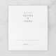 Cette carte mariage pliée de typographie chic est parfaite pour une réception de mariage moderne. Le design simple est composé d'une typographie minimaliste classique en noir et blanc, dans un style boho rustique. Personnalisable dans n'importe quelle couleur. Gardez le design minimal et élégant, en l'état, ou personnalisez-le en ajoutant vos propres graphiques et artwork. Personnalisez le dos des cartes de lieux avec les noms de la mariée et du marié et la date. Achetez en gros et écrivez à la main les noms des invités et les numéros de table sur les cartes imprimées à leur arrivée.