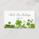Carte mariage avec les images de shamrock irlandais et tourbillons. En raison de ce type de carte il n'est pas possible de faire des noms d'individus. Dans cette conception, vous pouvez supprimer le nom de l'exemple (carte blanche). Vous devrez alors écrire les noms individuels à la main.