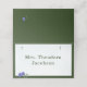 Le design présente un bel arrière - plan bleu brun au nom du client. Deux beaux roses sont exposés ensemble dans le coin inférieur gauche. Le dos de la carte présente l'image d'un troisième rose. Le texte est personnalisable. Conçu pour coordonner avec la suite catholique Mariage bleu et vert foncé.