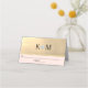 Personnalisez ces cartes de lieux élégantes et modernes à votre prochaine réception mariage ou anniversaire. Monogramme marié et marié avec fausse feuille d'or et arrière - plan de parties scintillant avec faux coeur de diamant. Couleur rose pâle. Vider / remplir les cartes modèles - modifier comme vous le souhaitez.