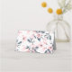 Carte de place pliée avec un élégant motif fait avec une aquarelle illustration de fleurs roses avec feuilles et tiges bleu-gris.