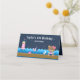 Cette jolie carte de place dispose d'un ours marin sur une terrasse en bois avec un mouette et un crabe. Dans l'arrière - plan il y a un phare rose et blanc, un oiseau mignon sur un voilier, des vagues de l'océan et un ciel étoilé bleu marine. Le texte combine des polices audacieuses et serif pour un look élégant et moderne. C'est parfait pour une fête d'anniversaire à thème nautique.