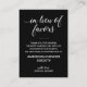 Ces cartes de lieux en noir avec un texte blanc "au lieu de faveurs" sont une merveilleuse façon de faire savoir à vos invités que vous avez fait un don à votre organisme de bienfaisance préféré en leur honneur le jour de votre mariage. Une partie de la collection Alejandra. Également disponible en "faveurs".