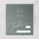 Carte d'emplacement de numéro de table simple et minimale pour votre mariage avec une police de script moderne qui dit "table" avec une ligne vide où vous pouvez remplir le numéro de table et le nom de l'invité. Vous pouvez ajouter les noms de la mariée et du marié à l'arrière. La couleur arrière - plan est vert forêt.