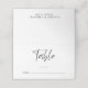 Numéro de table mariage moderne carte de place avec "Table" dans un script chic et lignes blanches pour vous de remplir les numéros de table et les noms de vos invités. Au verso, ajoutez vos prénoms et la date de réception.